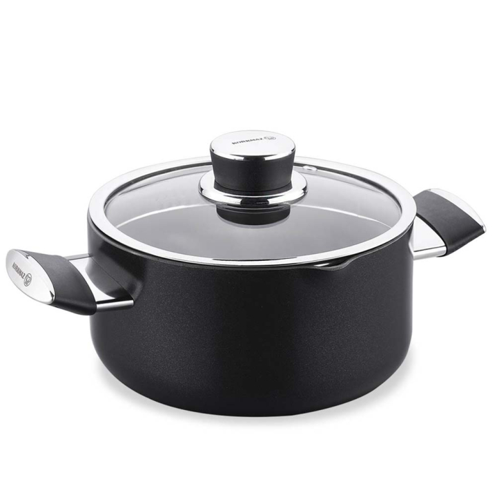 Черна керамична тенджера с незалепващо покритие и стъклен капак с отвор за пара, 28/14.5 см, 8 л