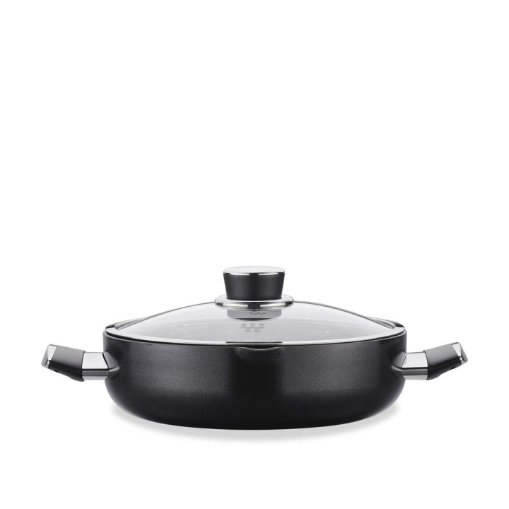 Черна керамична тенджера с незалепващо покритие и стъклен капак с отвор за пара, 26/7.5 см, 3.5 л