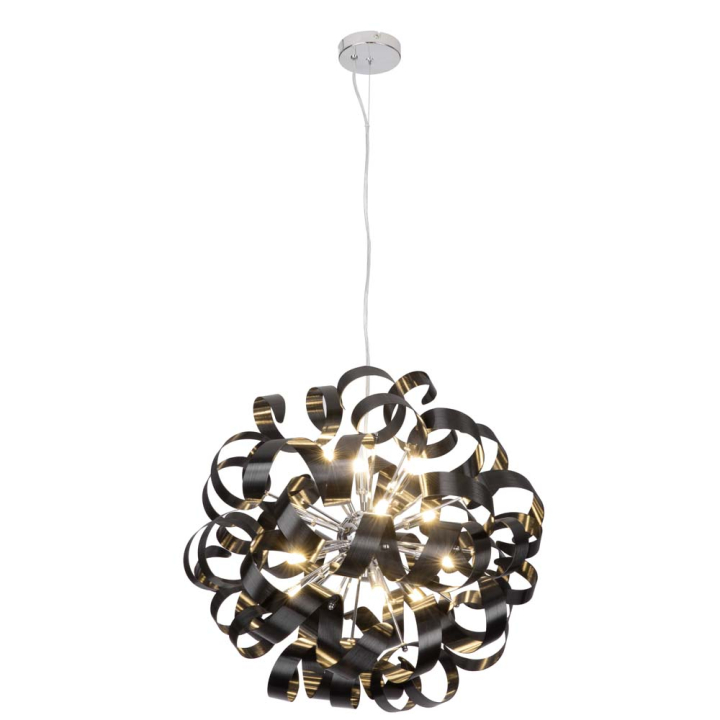 LED пендел с артистичен дизайн от спираловидни черни ленти, оформящи сфера, 12X3W, G9