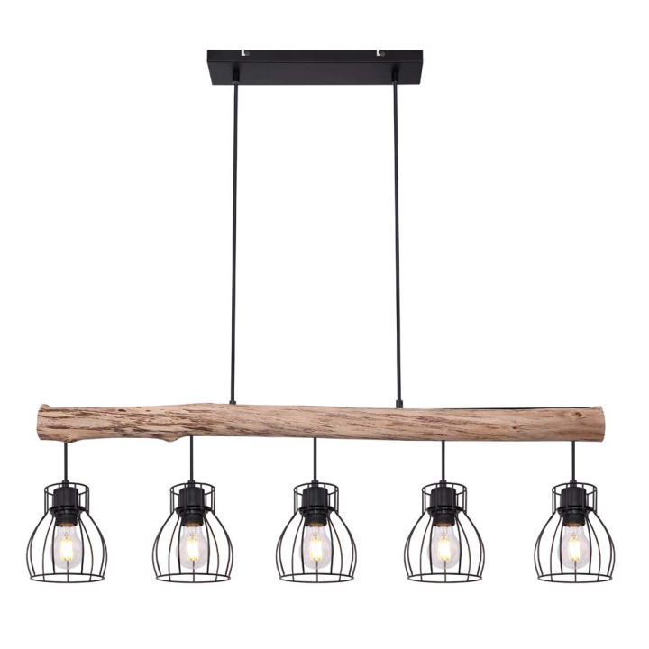 Дървен полилей с 5 абажура – 40W