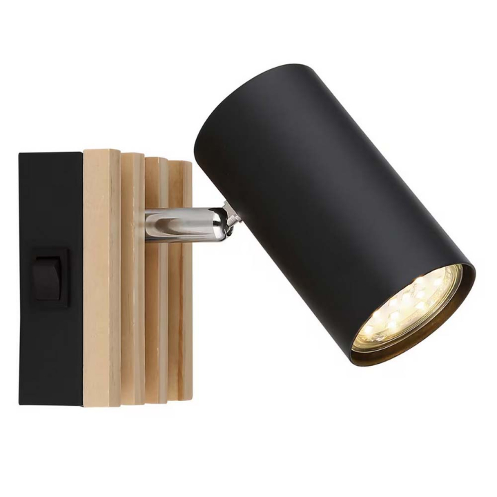 Спотът е елегантен и се превръща в перфектния акцент във всяка спалня или трапезария, всеки хол или коридор. Съчетанието от дърво и черен метал придава естетически вид на помещението и нежно го осветява.