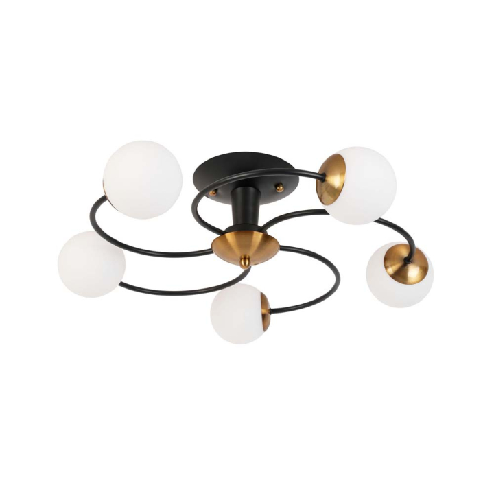 Плафониера в черно, бяло и златисто, 5x10W, G9, 50/14 см
