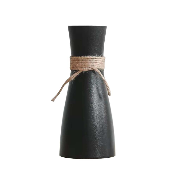 Черна керамична ваза с декоративно усукана връв от юта, 20/8.5 см, ръчна изработка