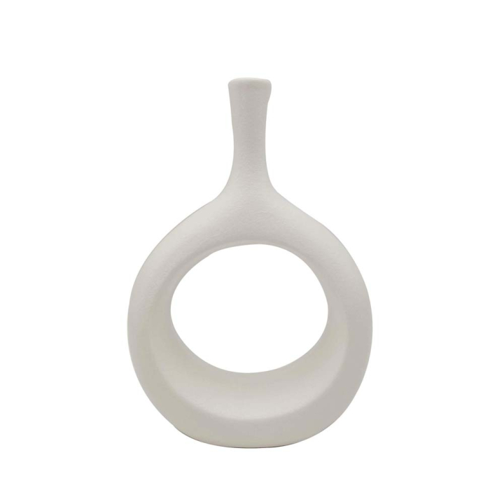 Бяла керамична ваза с ефектен дизайн, 16/6.5/23.5 см, ръчна изработка