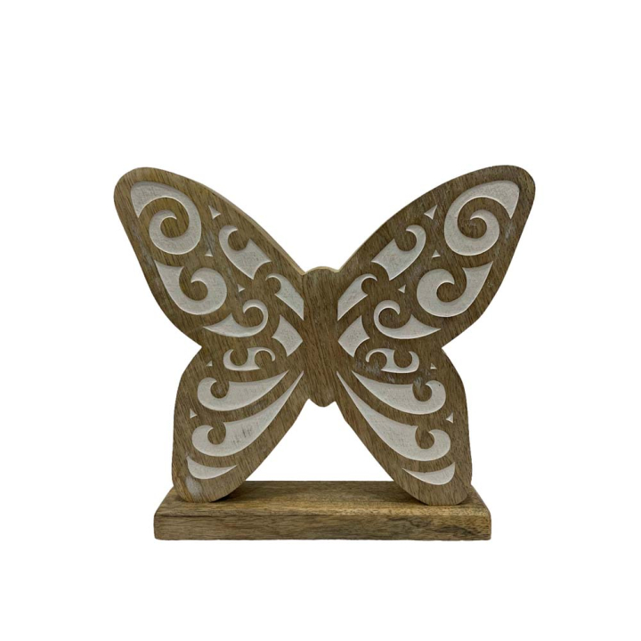 СТАТУЕТКА ДЪРВЕНА ПЕПЕРУДА НА СТОЙКА 18.5/20/3.5 СМ AMBIA HOME 48258040304