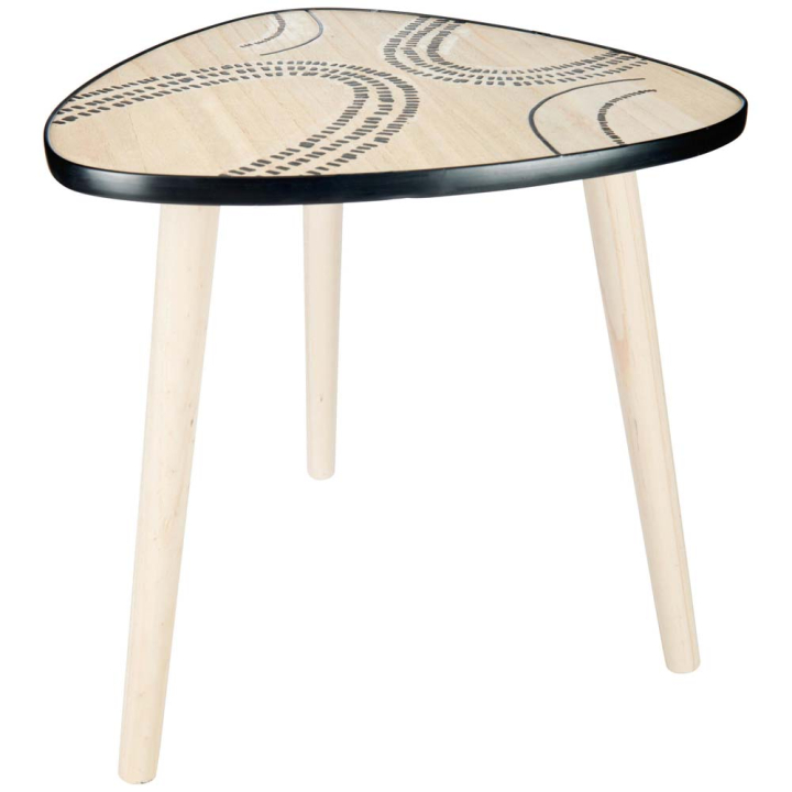 Помощна маса от МДФ с три крачета и триъгълен плот с черна декорация, 40/40/40 см