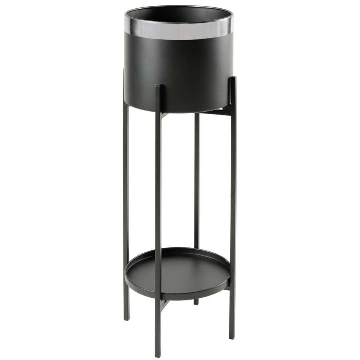 Кашпа на стойка, изработена от черен метал със сребрист обков.