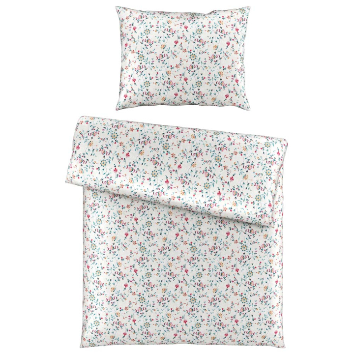Спален комплект от 2 части с цветни флорални мотиви, 100% сатениран памук