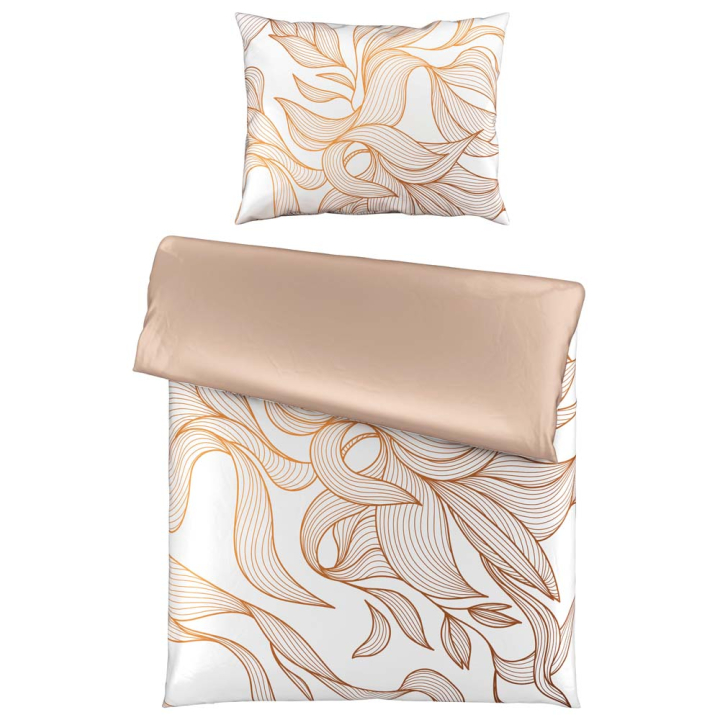 Спален комплект от 2 части с флорални мотиви в бежово, 100% сатениран памук