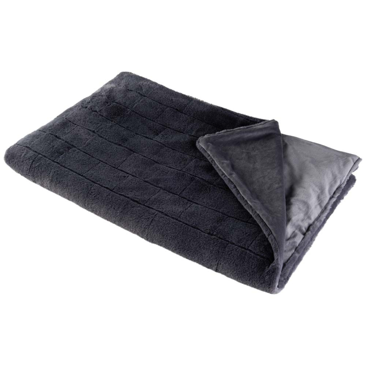 Тъмносиво пухкаво одеяло с две лица, с повърхност тип животинска кожа, 100% полиестер, 150/200 см