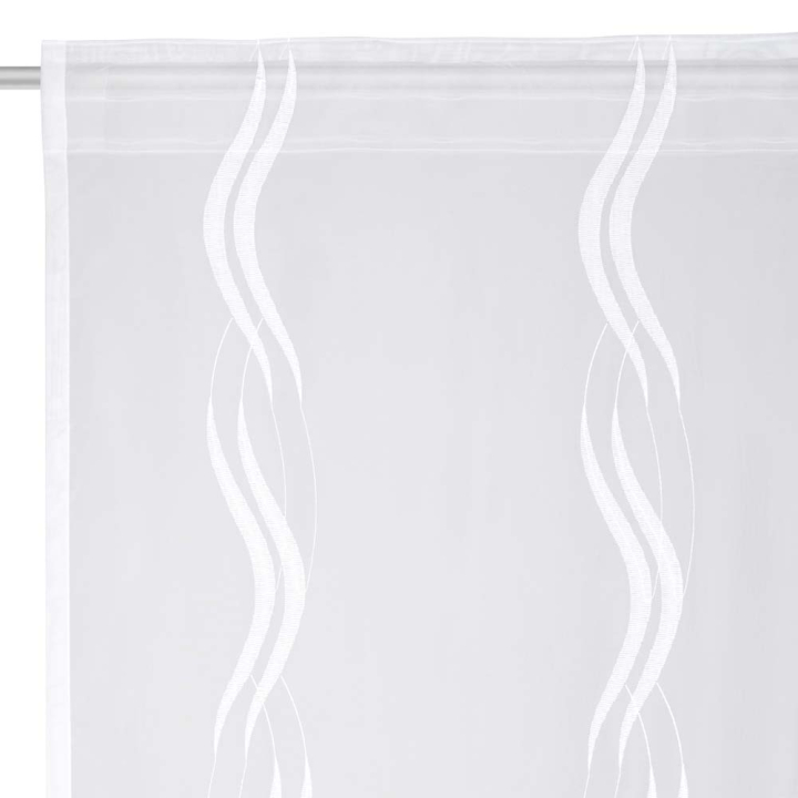 Тънко бяло перде с дискретни бродирани орнаменти и комбиниран перделик за закачане на тръбен или релсов корниз, 135/245 см