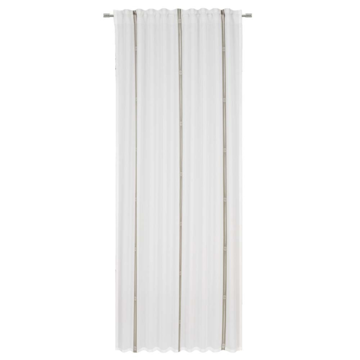 Тънко перде в бяло и кафяво с елегантен мотив, с перделик за закачане на тръбен или релсов корниз, 140/260 см