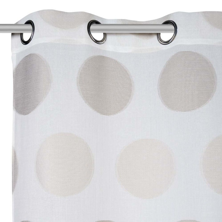 Тънко полупрозрачно перде 140/245 см в бeжов цвят с принт кръгове, с капси - подходящо за закачане върху тръбен корниз