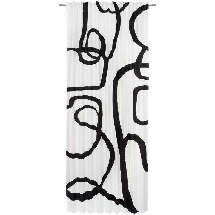 Плътно перде в бяло и черно с 8 бр. капси за закачане на тръбен корниз, 135/245 см