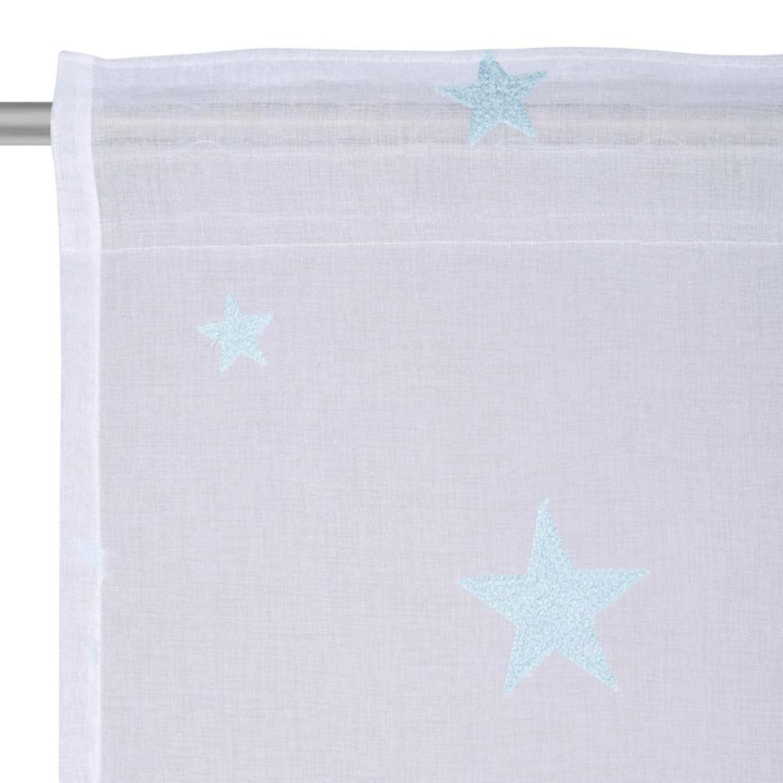 Тънко бяло перде със звезди с перделик за закачане на тръбен или релсов корниз, 140/245 см