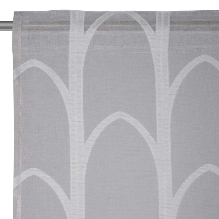 Тънко сиво перде с геометрични линии с перделик за закачане на тръбен или релсов корниз, 140/245 см