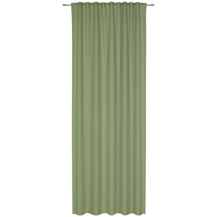 Плътно перде в зелен цвят с перделик за закачане на тръбен или релсов корниз, 135/245 см