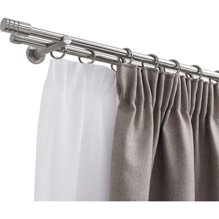Двоен окомплектован корниз с модерен и елегантен дизайн. Изработен от благородна стомана.