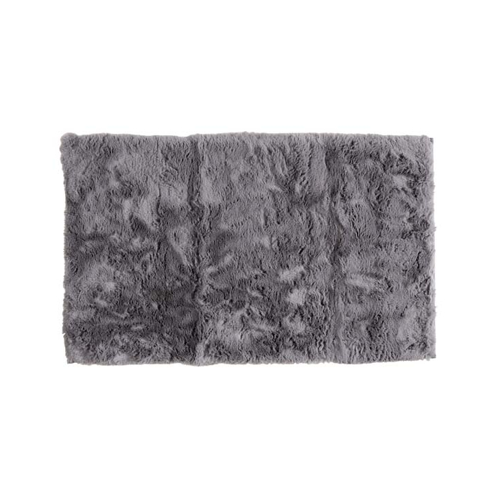 Постелка за баня в сив цвят с изкуствен косъм и неплъзгаща основа, 100/60 см.