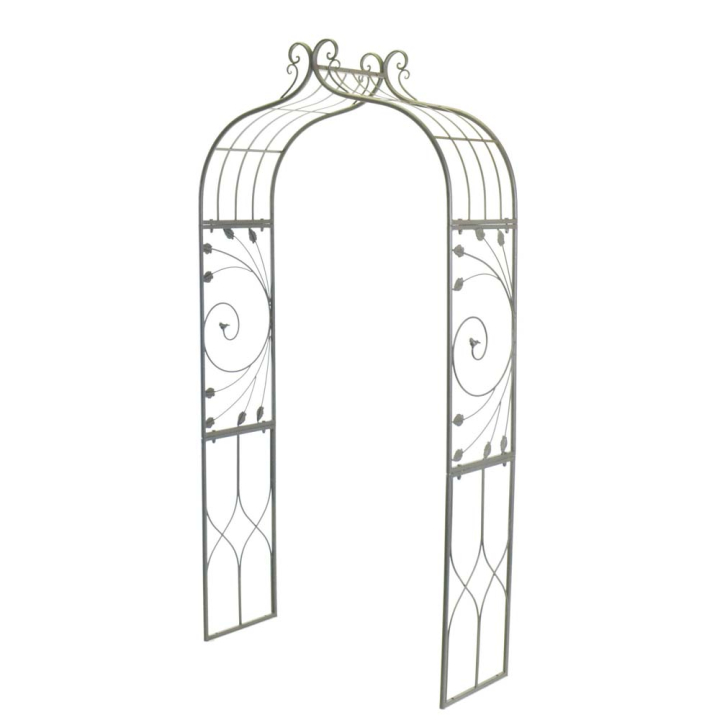 Романтично оборудване за вашата градина, което носи полъх от стари времена и асоциация за приказни моменти на открито! Съчетайте декоративната арка с други аксесоари от същата серия и оформете естетическа композиция в двора. Винтидж визията с грациозни ажурни извивки и ефектната състарена повърхност подхождат на всяко външно пространство.