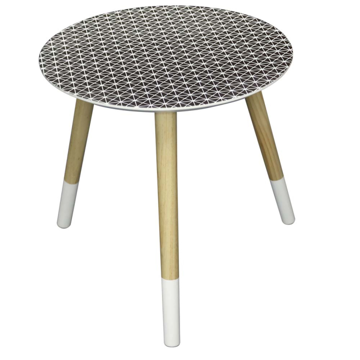 Кръгла помощна маса с размери Ш:40/Д:40/В:40 см. Притежава плот с дизайнерска текстура на фигури (квадрати и правоъгълници) оцветени в черно и бяло, монтиран на три овални крака. Масата е с максимална товароносимост до 5 кг, като поставена до фотьойла чашите с напитки, увлекателния роман или таблета винаги ще са на една ръка разстояние. Масата притежава неподръжаем чар и изглежда страхотно. Размерите и са съобразени, така че да не заема много пространство в помещението, но пълноценно да изпълнява своята функция. Продуктът ще добави много положителна енергия към помещението, като със сигурност ще се чувствате комфортно настанени до нея.
