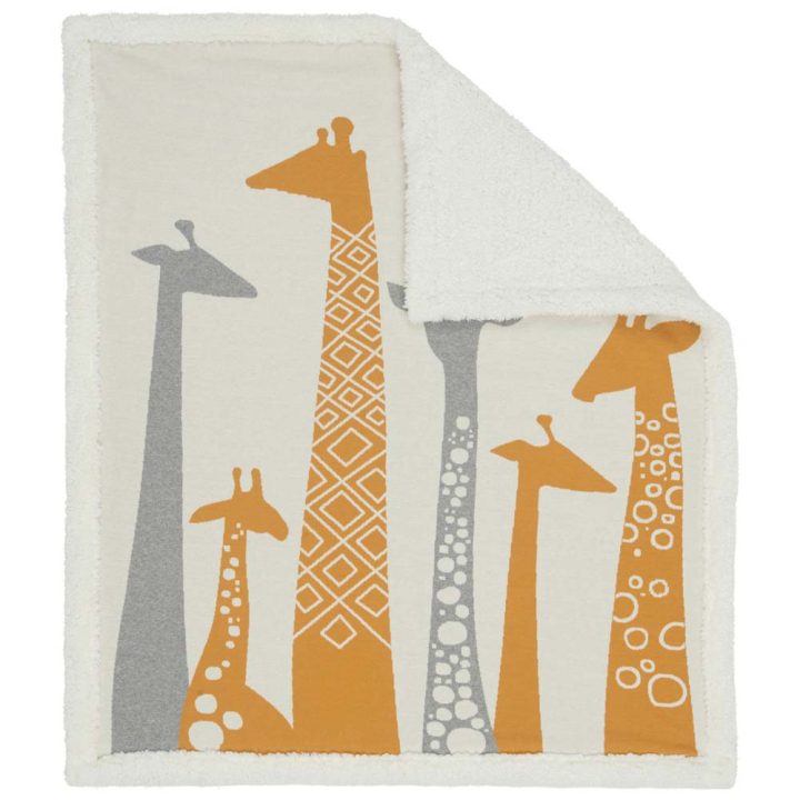 Бебешко поларено одеяло от 97% БИО памук, 80/100 см, принт жирафи в оранжево и сиво