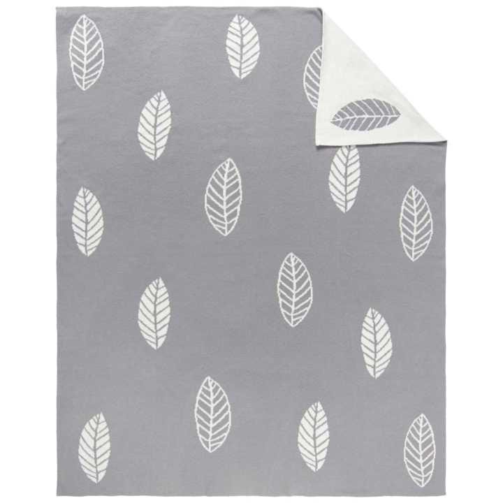 Сиво бебешко одеяло с принт листа, 100% БИО памук