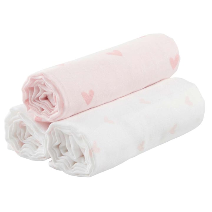 Комплект 3 бр. бебешки пелени от БИО памук в бяло и розово, 80/80 см