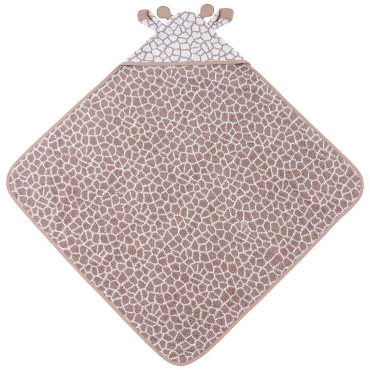Памучна бебешка хавлия жирафче в бежово и кафяво с качулка, 75/75 см