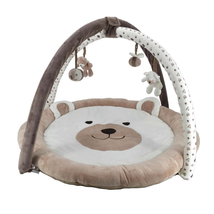 Текстилна активна гимнастика 0+ с включени играчки, подходяща за вътрешна употреба, дизайн кафяво мече с уши, 0-24 мес.