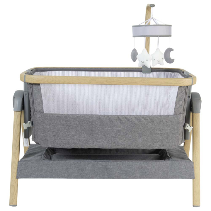 Първо е изключително удобна, благодарение на ултра комфортният матрак, който обещава на вашето бебче вълшебни сънища, а на вас - заслужено спокойствие. Второ е с функция за регулиране на височината, която е подходяща за адаптиране към вашата спалня - т.е. имате възможност да я доближите близо до вашето легло и да я монтирате на подходящо ниво. Приближете кошарката, отворете едната й страна посредством ципа и се вслушайте в лекото дишане на спящото дете. Когато мъничето е будно, закачете подвижната стойка с играчки, за да тренира координацията, възприятията за форми и цветове, а вие да свършите някоя бърза задача вкъщи. За по-големите бебчета, които се опитват да се изправят на крачета, кошарката дава възможност за здрава опора на ръцете и безопасна тренировка на бъдещия бързоходец.