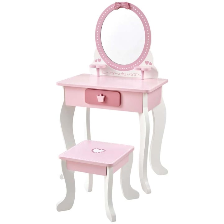 Комплект детска тоалетка и стол в бяло и розово, подходяща след 3 год. възраст, 29/48/86.5 см