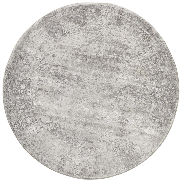 Кръгъл бежов килим с Винтидж декорация, 160 см, 75% вискоза, 25% полиакрил.