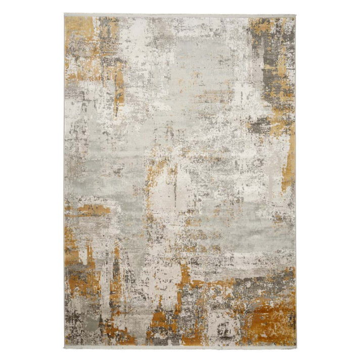 С привлекателна релефна декорация и уютно излъчване, килимът в интересни златни нюанси ще добави стил и завършеност на интериорното пространство. Абстрактните Винтидж мотиви и ресните носят индивидуален почерк, като умело се вписват в интериори с различен стил. Меката и пухкава повърхност с дебелина на косъма около 8 мм, е приятна при допир и релаксираща при стъпване. Финалният щрих в едно стилно и модерно пространство с нотка ретро вкус! Изключително лесен за навиване, когато е необходимо почистване на пода. Изработен от висококачествен текстил (вискоза и полиакрил), гарантира устойчивост и дълготрайно съхраняване в първоначален вид.