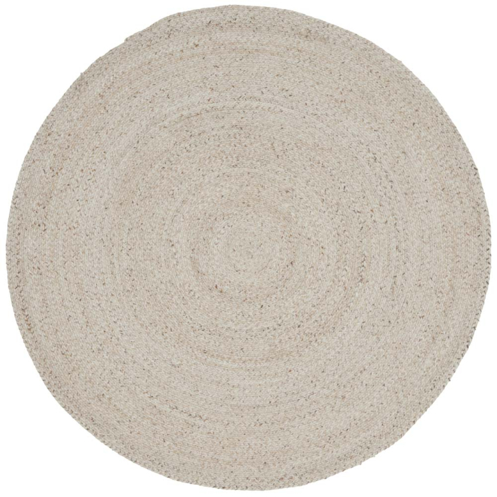 Ръчно тъкан кръгъл килим в бежов цвят, 100% рециклиран полиестер, Ф120 см, подходящ за вътрешно и за външно пространство