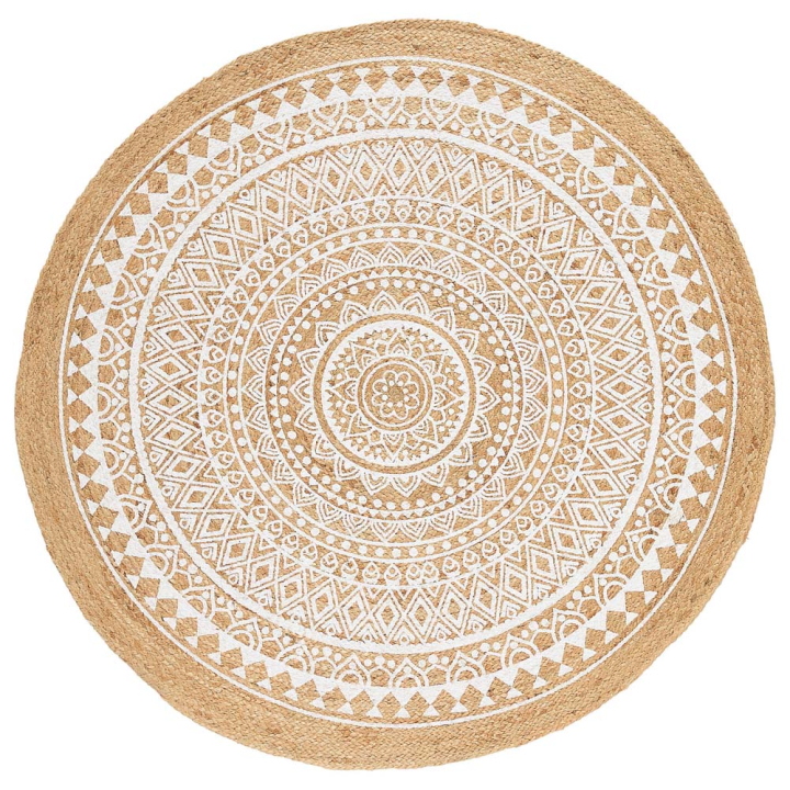 Килимът с принт в стил Мандала е ръчно изработен от 100% юта и се превръща в перфектния акцент във всяка стая.
