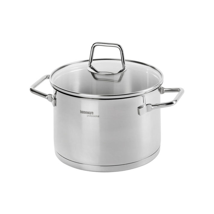 Тенджера от висококачествена неръждаема стомана тип 201, с полирана повърхност и мерителна скала. Капакът е с топлоустойчиво прозрачно стъкло. Подходяща за всички видове печки - устойчивост на котлон до 240°C, във фурна до 180°C. Размерът Ф20/11,5 см/вместимост 2,9 л, позволява приготвяне на задушени зеленчуци и месо, на сочни макарони или лека ароматна супа.