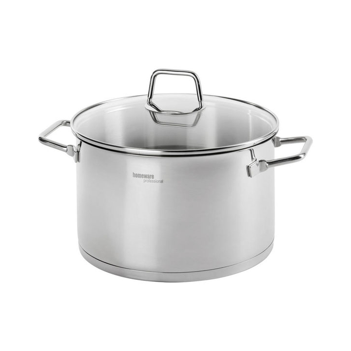 Тенджера от висококачествена неръждаема стомана тип 201, с полирана повърхност и мерителна скала. Капакът е с топлоустойчиво прозрачно стъкло. Подходяща за всички видове печки - устойчивост на котлон до 240°C, във фурна до 180°C. Размерът Ф24/13,5 см/вместимост 5,5 л, позволява приготвяне на по-голямо количество храна за семейството или за вашите гости.
