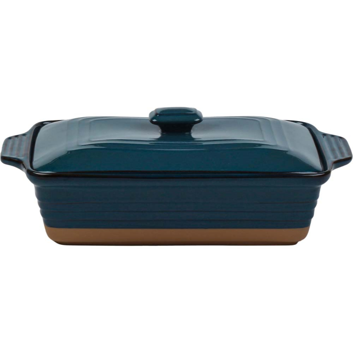 Керамичен съд за печене в синьо и кафяво с капак, 33.7/23.2/9.2 см