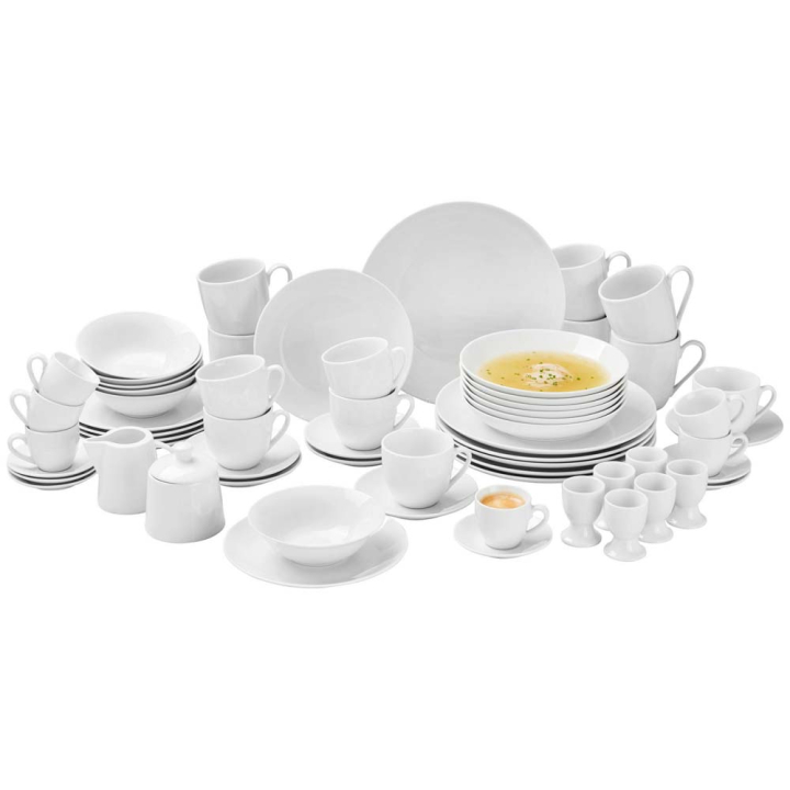 Белотата на порцелана обгръща трапезата, превръщайки всяка хапка в тиха медитация. Сервизът носи духа на изящество и устойчивост - той е достатъчно семпъл, за да подчертае естетика, но и издръжлив, за да бъде ежедневен спътник.
