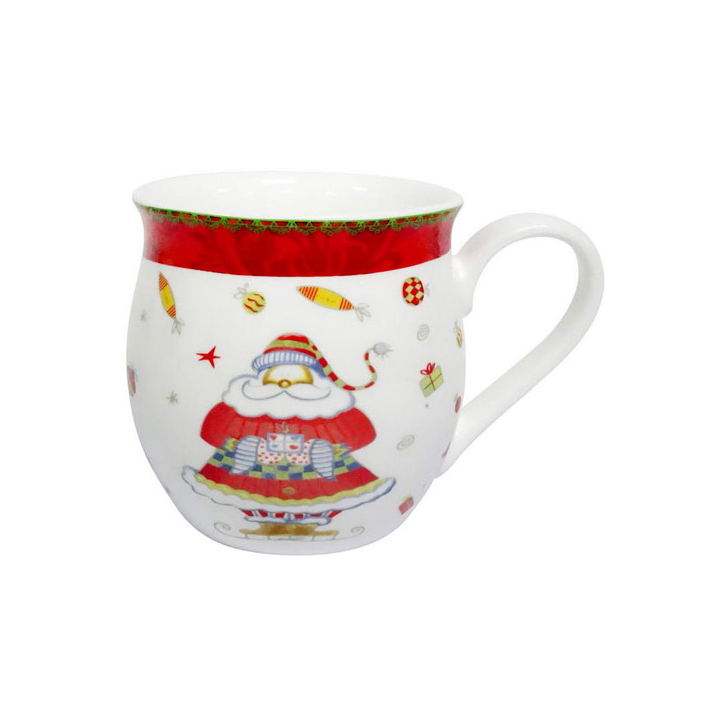 Цветната чаша с лика на веселия и закачлив Дядо Коледа, заобиколен с много играчки за елха, ще бъде чудесно допълнение към празничната функционална украса. Изработена е от висококачествен костен порцелан с доказани свойства и характеристики. Прекрасните коледни мотиви греят в яркочервено и облагородяват пространството. Идеална при събиране на семейството и близки приятели в една жизнерадостна, уютна атмосфера. Комбинирайте с други коледни съдове от същата колекция, налични в продуктовия ни каталог.
