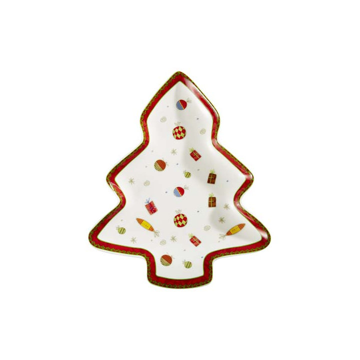 Коледно плато-елха от костен порцелан със забавни цветни мотиви, дължина 28 см