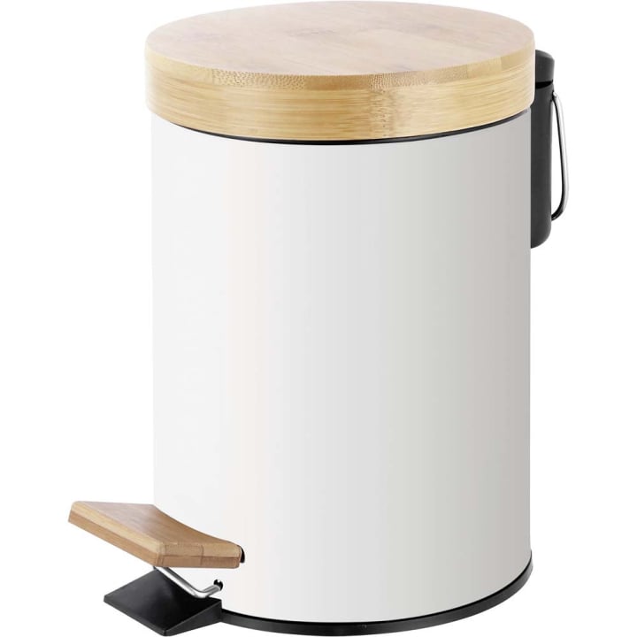 Бял метален кош за отпадъци с бамбуков капак, 3л