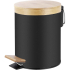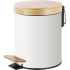 Бял метален кош за отпадъци с бамбуков капак, 5л