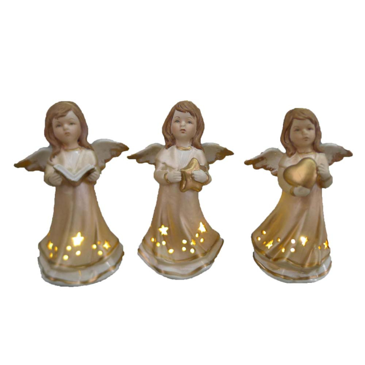 КОЛЕДНА СВЕТЕЩА СТАТУЕТКА АНГЕЛ 8.7/13.5/6.4 CM АСОРТИ