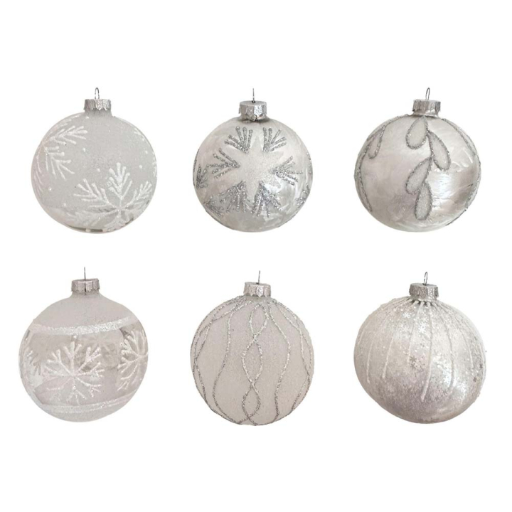 WINTER MORNING КОЛЕДНА ТОПКА БЯЛ 6 CM АСОРТИ