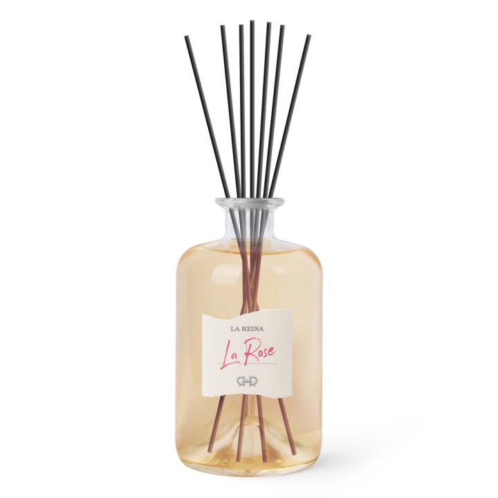 Дифузерът за стая LA REINA е идеалният начин да поддържате постоянен и приятен аромат в дома или офиса. С помощта на абсорбиращи стикове, поставени във флакона, се разпръсква нежен и деликатен аромат в помещението. Чрез добавяне или премахване на стикове можете лесно да регулирате интензитета на аромата според предпочитанията си. За да се усеща наситен и свеж аромат е нужно клечките да бъдат обръщани.