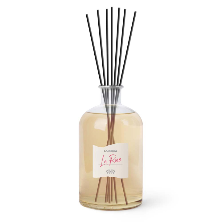 Дифузерът за стая LA REINA е идеалният начин да поддържате постоянен и приятен аромат в дома или офиса. С помощта на абсорбиращи стикове, поставени във флакона, се разпръсква нежен и деликатен аромат в помещението. Чрез добавяне или премахване на стикове можете лесно да регулирате интензитета на аромата според предпочитанията си. За да се усеща наситен и свеж аромат е нужно клечките да бъдат обръщани.
