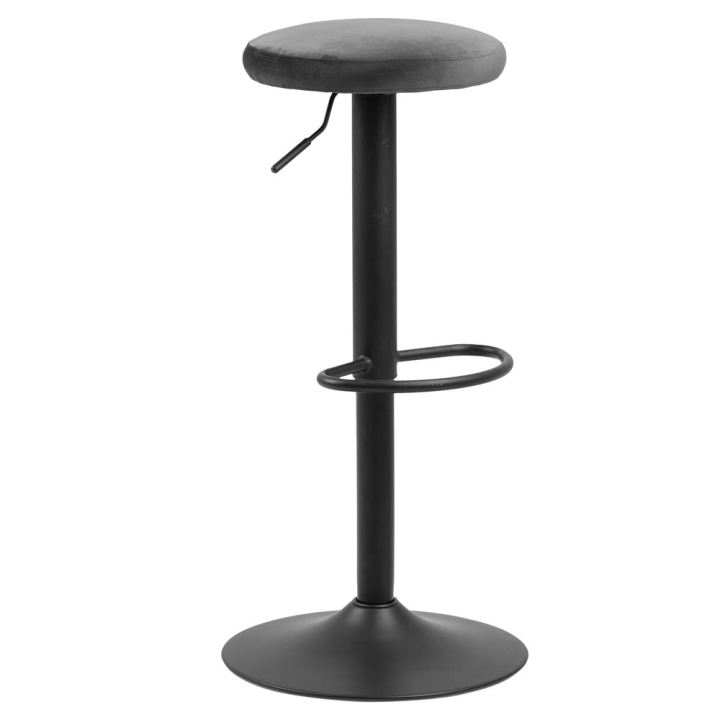 Бар стол с регулируема височина с размери на продукта Ш:40/Д:40/В:62-82 см. Моделът е здрав и стабилен, произведен от стомана, с максимална товароносимост до 110 кг. Притежава кръгла седалка с пълнеж от полиуретанова пяна, тапицирана с текстилна дамаска, 100% полиестер, поставена на основа с газов амортисьор и стойка за крака. За максимален комфорт може да променяте височината на седене от 62 до 82 см, посредством лост под седалката. Обзаведете домашния бар с удобен стол за перфектната романтична вечер.