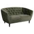 Този елегантен двуместен диван в зелен нюанс с кадифена тапицерия е перфектното място за релакс и споделени мигове със семейството и приятелите. Диванът се откроява със своя стилен честерфийлд дизайн, който впечатлява със своите изискани декоративни шевове върху облегалките и подлакътниците.